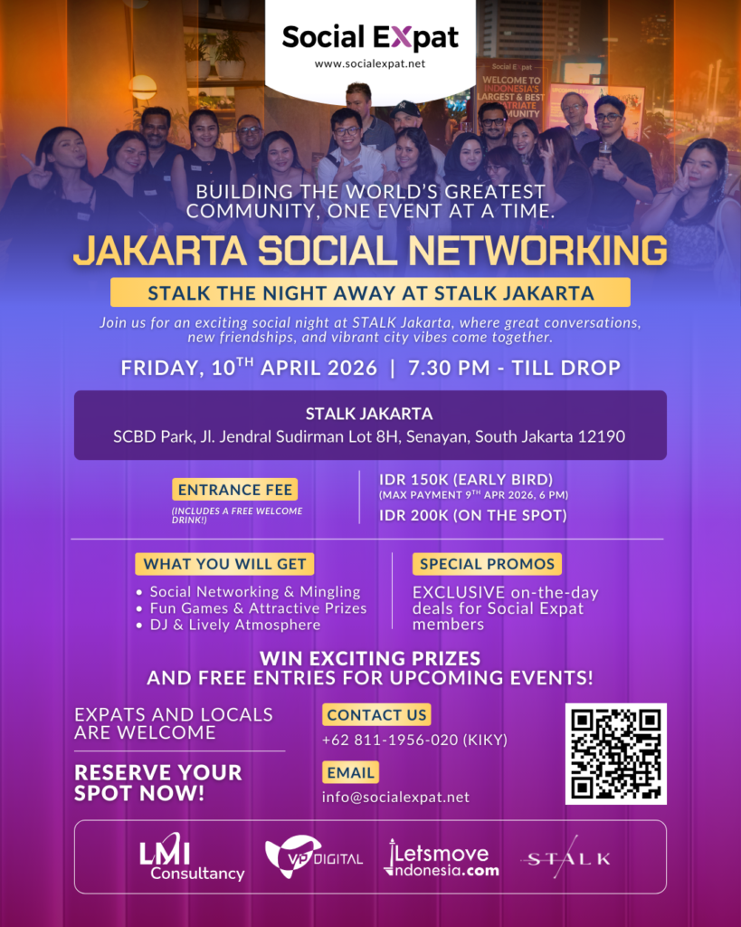 Whether you’re new in the city or building your professional community, these events are designed by Social Expat to help expats connect, collaborate, and feel at home in Indonesia’s dynamic capital.