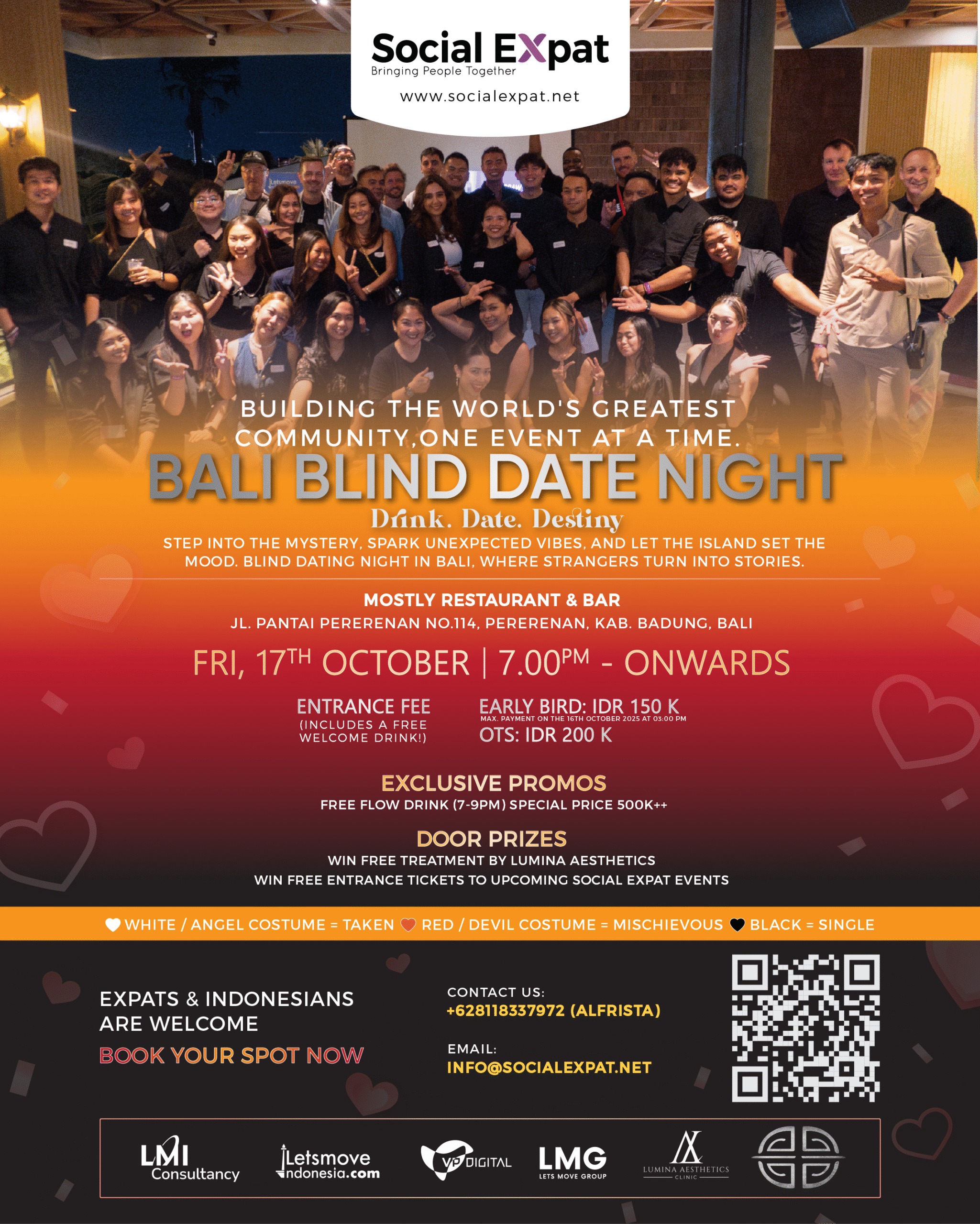 Step into the mystery, spark unexpected vibes, and let the island set the mood Blind Dating Night in Bali, where strangers turn into stories this October!