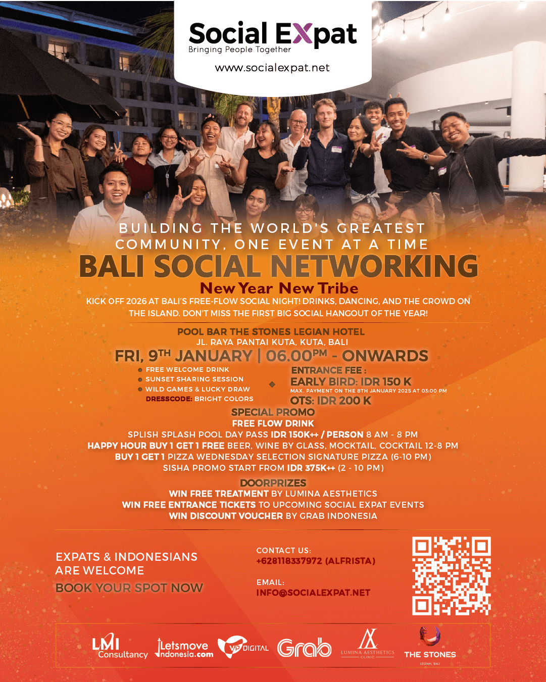 Join us for Kick off 2026 at Bali’s free-flow social night! Drinks, dancing, and the crowd on the island. Don’t miss the first big social hangout of the year!