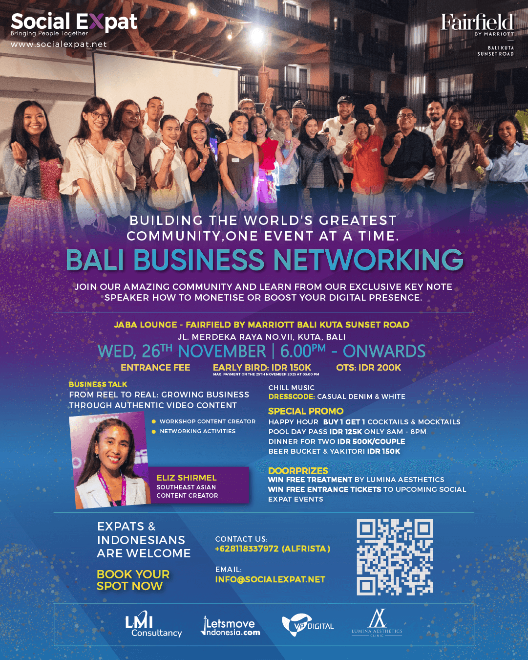 📍Venue: Jaba Lounge – Fairfield by Marriott Bali Kuta Sunset Road