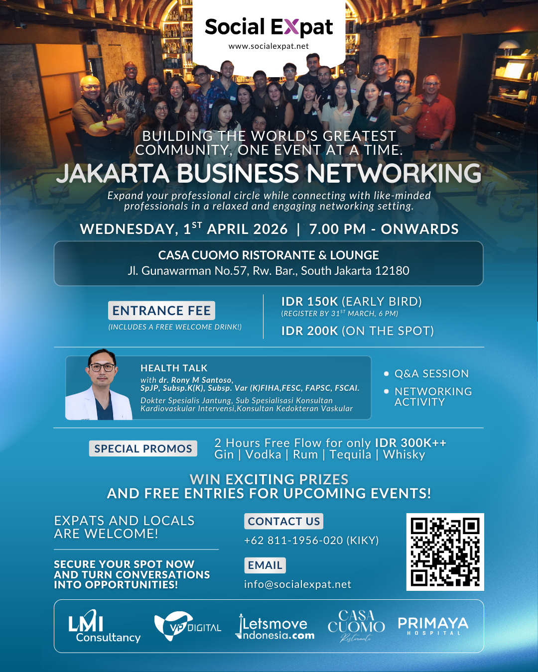 Expand your professional network, gain valuable business insights, and enjoy a night of meaningful connections at one of South Jakarta’s favorite spots.
