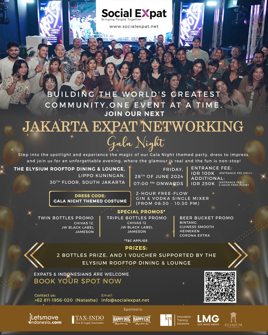 Social Expat events are known for their friendly and welcoming vibe. This is your chance to meet other expats from all walks of life, share experiences, and expand your social circle in Jakarta. Don’t forget dress up at your best to win bottle prizes and a voucher for 3 lucky winners. Enjoy the 2 hour gin & vodka free flow from 8.30pm – 10.30pm for only IDR 250.000, including the entrance fee.